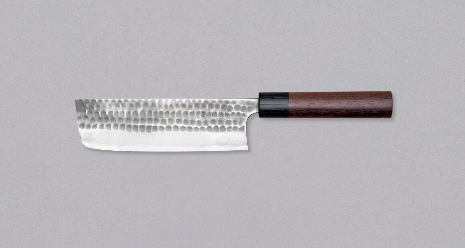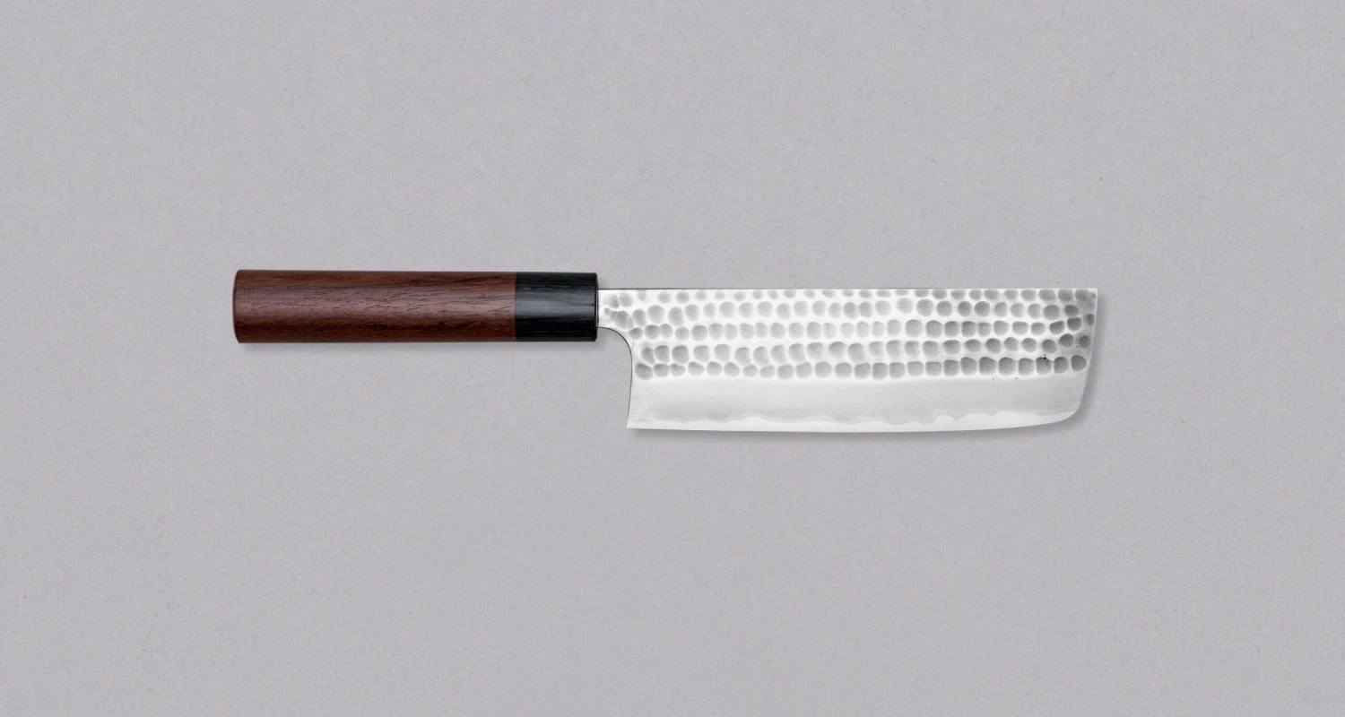 Nakiri shape is perfect for long or short cuts, while the thin tip allows for precise work. The Nakiri aka Nakiri Bocho is a traditional Japanese knife with a square, thin blade and a deep, flat belly. Because the entire flat edge of the knife touches the cutting board in a clean, vertical motion, no horizontal pulling or pushing is required.