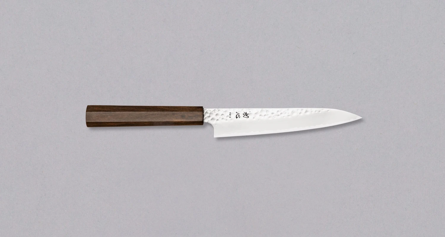 Petty knives are designed for smaller tasks on and off the cutting board. It’s an indispensable knife in any kitchen and can be used for peeling, mincing, paring, and decorating food. Petty or utility knives are basically a smaller version of gyuto or chef’s knives. Due to the length of the blade, it can also be used as a stand-alone knife if you are uncomfortable with longer blades. A must-have knife in every kitchen!