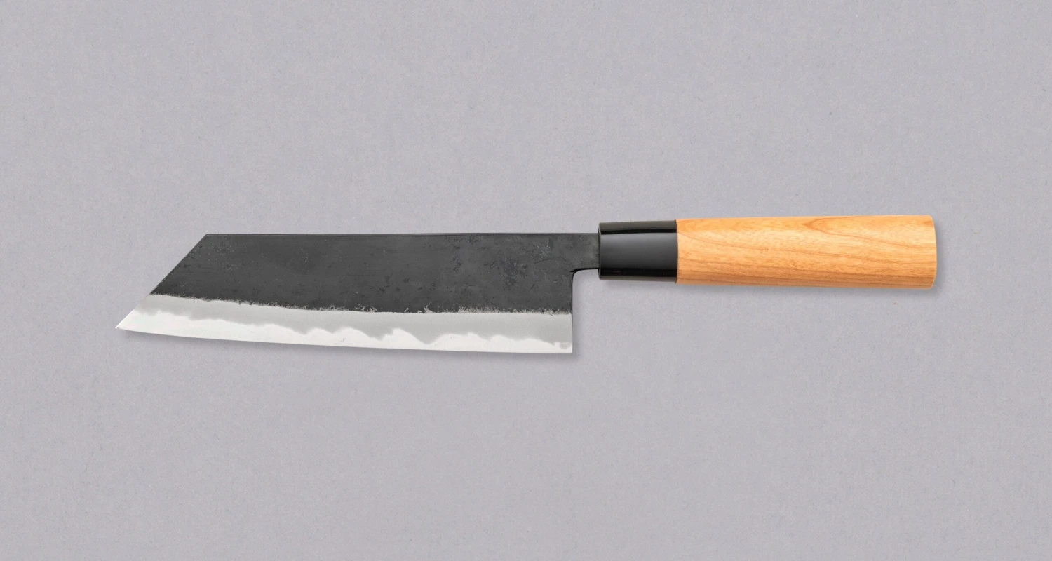 Yukihiro Sakai is a young blacksmith from Kumamoto (Kumamoto Prefecture on the island of Kyushu). He trained with Nishida-san [Nishida Hamono]. Yukihiro-San’s recent work is focused on Shirogami #1 with a kuro-uchi finish and evenly ground and flat profiles. His knives are affordable but of superior quality. We anticipate that over the years, the prices of his products will rise due to the superb craftsmanship and his growing popularity.