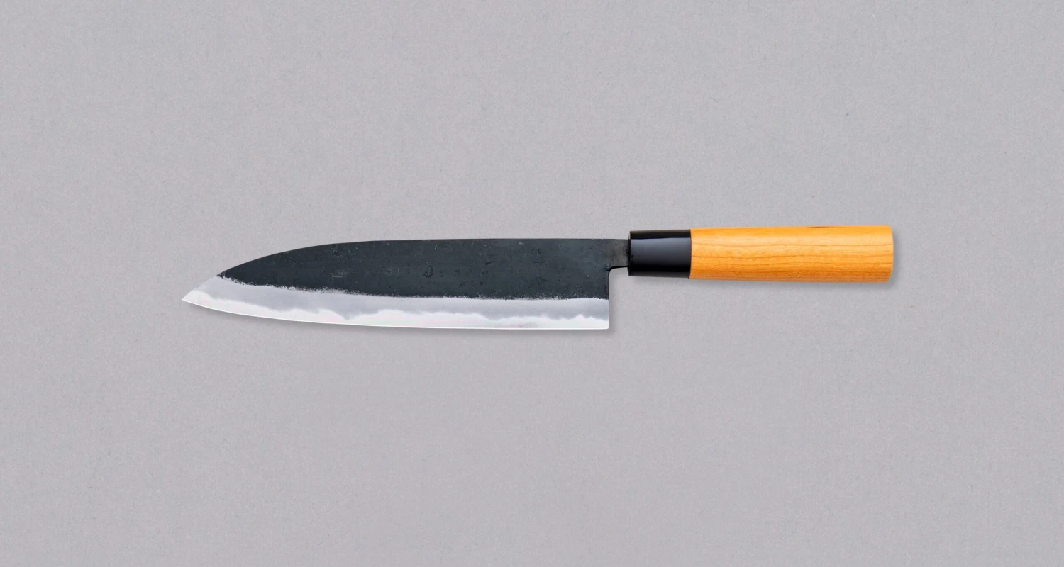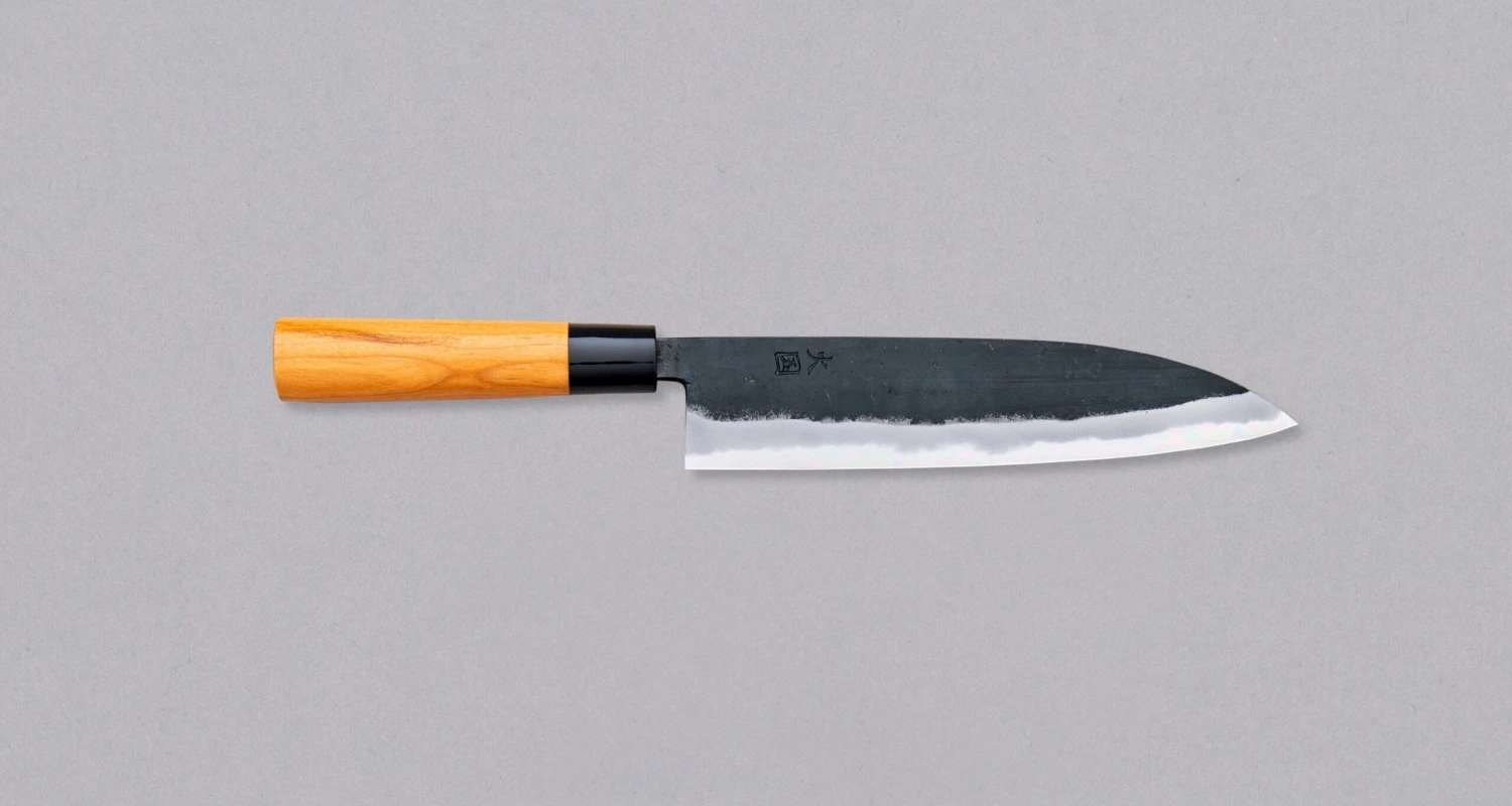 Yukihiro Sakai is a young blacksmith from Kumamoto (Kumamoto Prefecture on the island of Kyushu). He trained with Nishida-san [Nishida Hamono]. Yukihiro-San’s recent work is focused on Shirogami #1 with a kuro-uchi finish and evenly ground and flat profiles. His knives are affordable but of superior quality. We anticipate that over the years, the prices of his products will rise due to the superb craftsmanship and his growing popularity.
