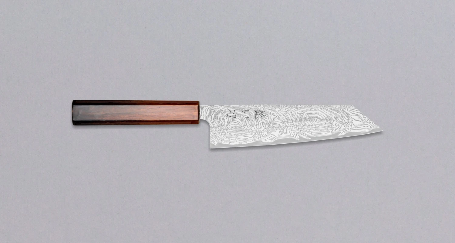 Bunka is one of the most versatile and useful blade shapes in the modern kitchen. It has a wide profile for easy food transfer and tends to be fairly flat towards the heel, enabling easy and fast chopping on the cutting board. A pointed tip allows piercing and precise, delicate work. A slight curve between the tip and the midsection makes the belly great for rocking the blade back and forth when cutting. It can be used for cutting meat, fish, and vegetables.