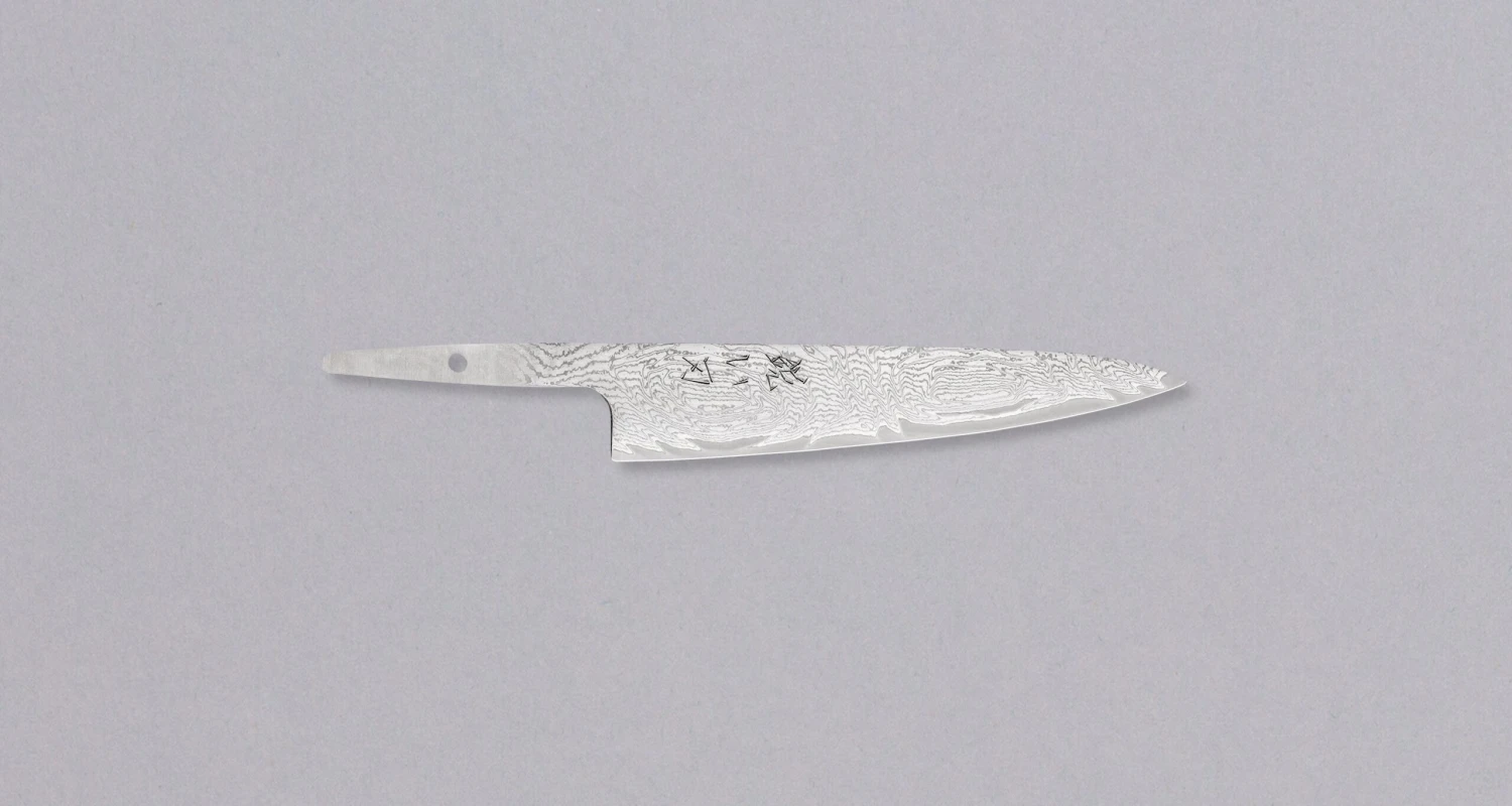 Hokiyama Petty Swirl Damascus is basically a smaller version of a Gyuto knife (Chef’s knife). Petty knives are intended for all those smaller tasks where larger knives are deemed unwieldy, both on and off the cutting board. A must-have knife in every kitchen, it can be used for peeling, mincing, paring, and decorating food.