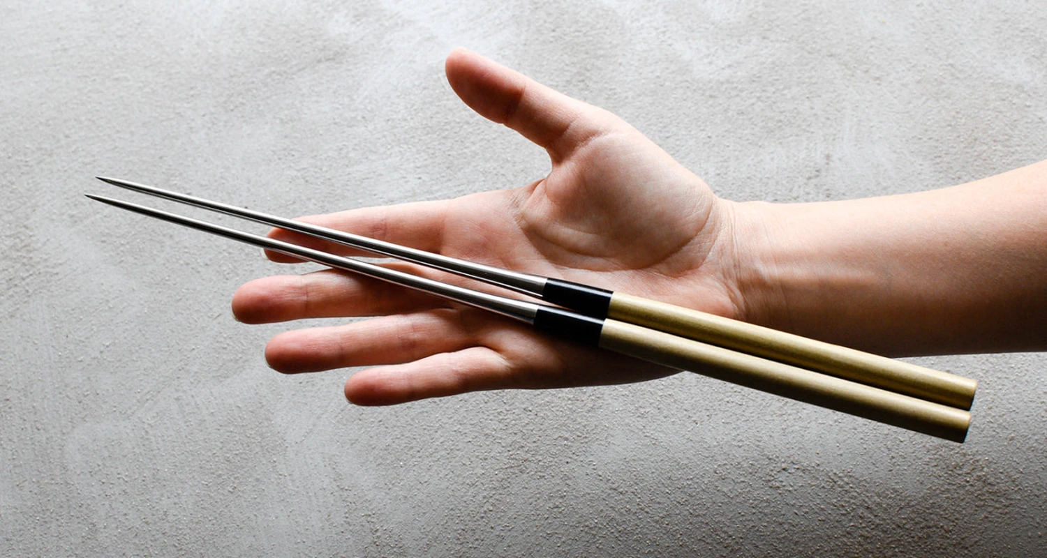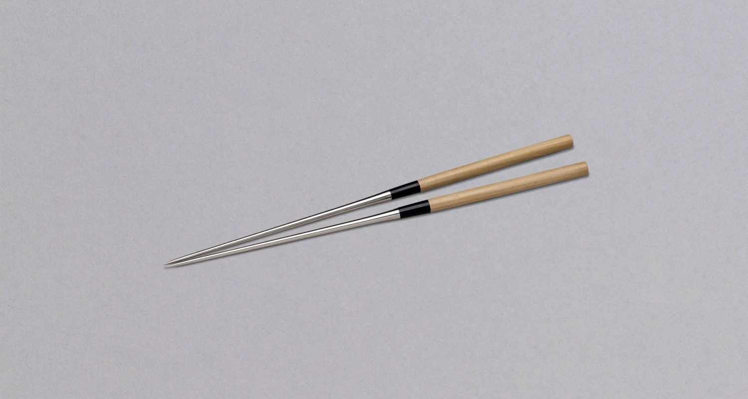 Steel or bamboo sticks? The first choice of Japanese chefs is steel, as bamboo can get an unpleasant odor after use. In addition to hygienic reasons, steel chopsticks also have the advantage of having a sharper tip that can be used for stabbing and also helps in roasting meat.