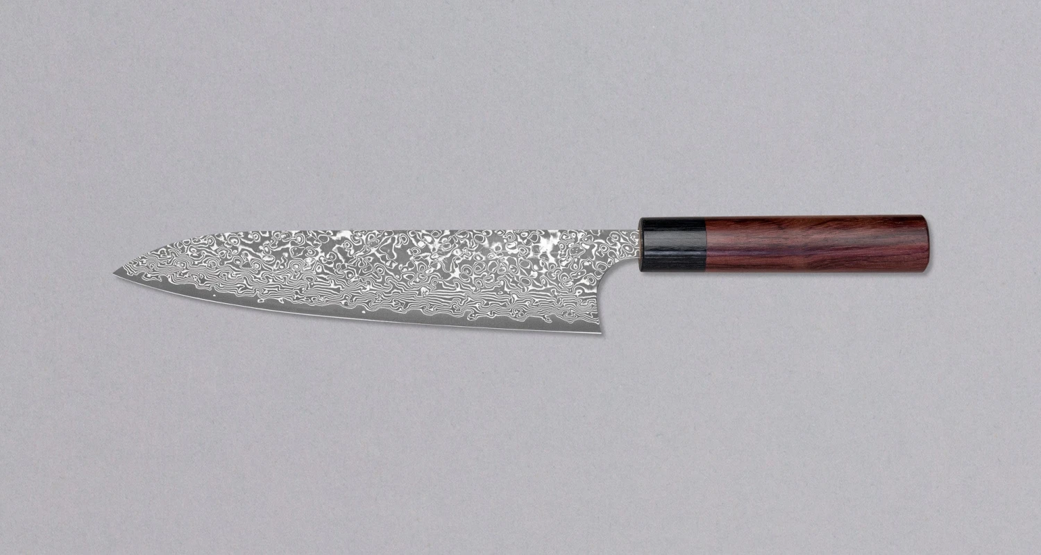 Kato VG-10 Gyuto Damascus 210 is a knife we warmly recommend to all you knife collectors and aficionados of superior design.