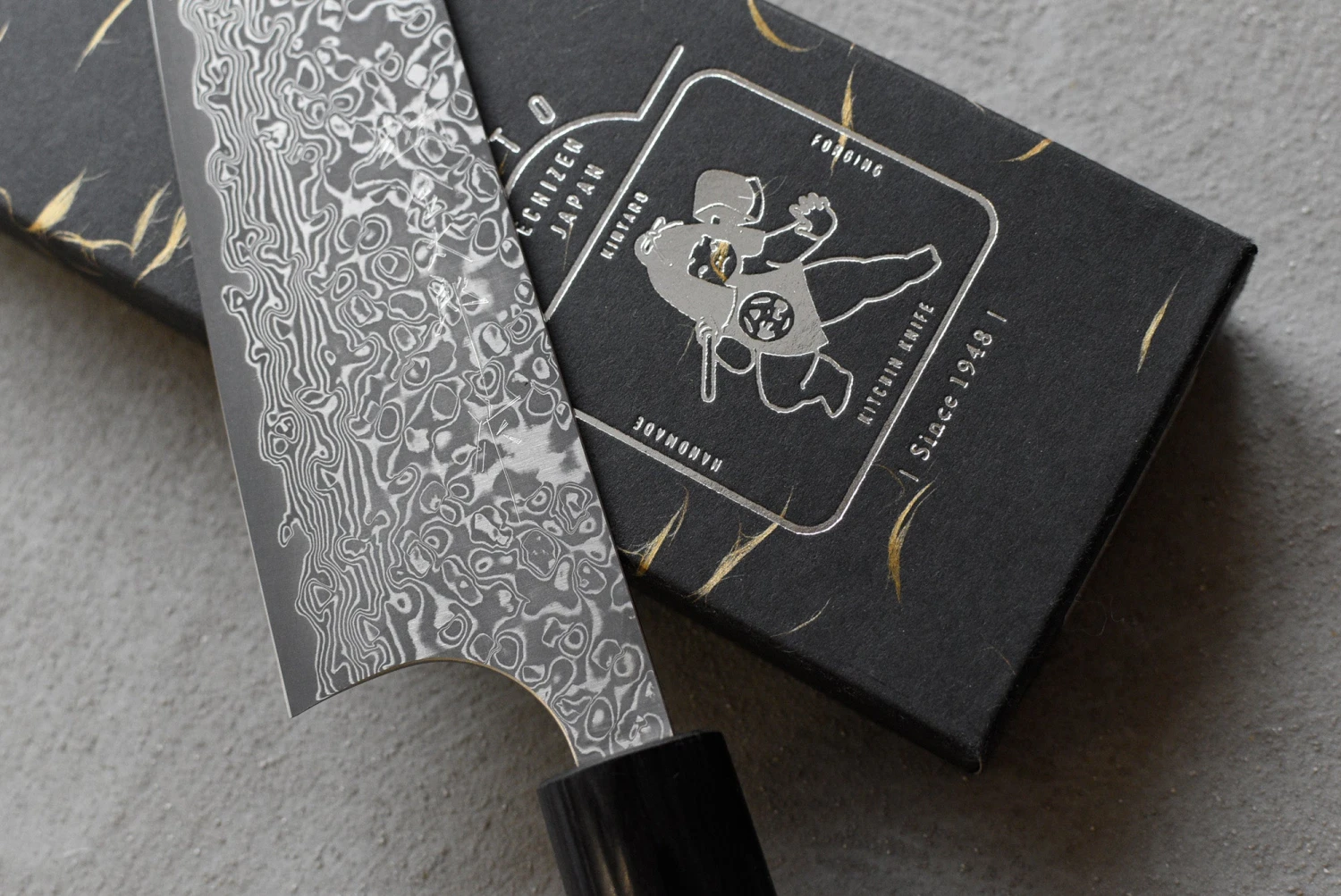 The VG-10 is currently the most popular Japanese steel, and when deciding which steel to use for a particular blade, one has to weigh its properties such as hardness, retaining sharpness, ease of maintenance, steel graininess, ease of sharpening, and lastly, cost and affordability. The VG-10 (V for Vanadium, G for “gold”, which means top quality) is produced by Takefu Special Steel Company, a relatively small company that 60 years prior managed to find the perfect balance between elements forming this famous Japanese steel.