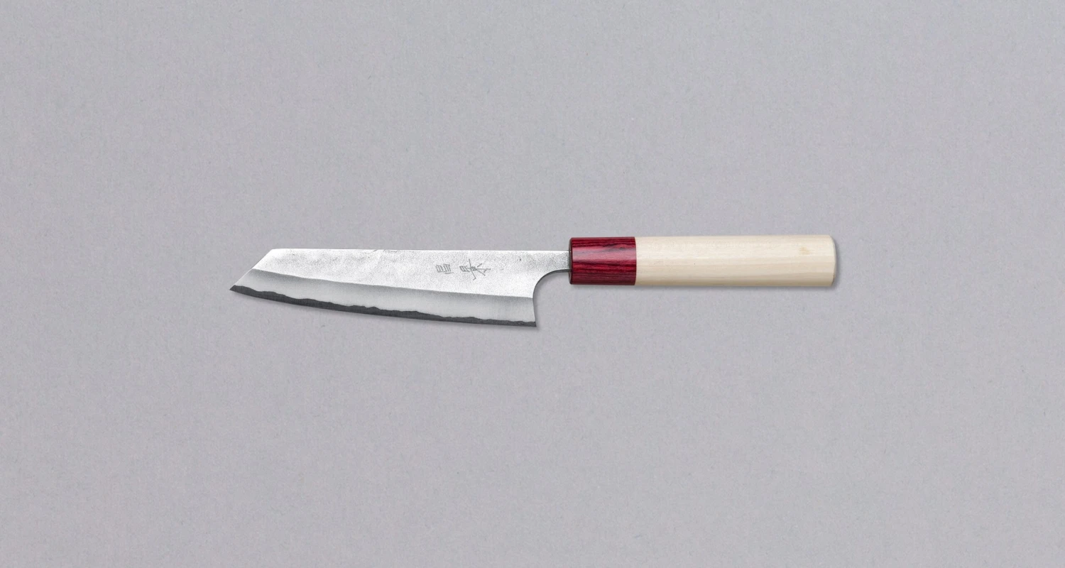 The shape of the Ko-Bunka makes it a multi-purpose knife, similar to the Santoku, and very easy to use. The word Bunka in Japanese means culture, and Ko small. The 135mm Yuki Ko-Bunka is a kind of cross between a Petty, Nakiri, and Mini Santoku knife. It has a characteristic Bunka shape with a pronounced tip reminiscent of Tanto blades. The knife will prove to be a great, versatile Utility knife ideal for chopping herbs, preparing vegetables, and even cutting smaller pieces of meat. With its versatile profile and original look, Yuki Ko-Bunka will become the star of your kitchen arsenal.