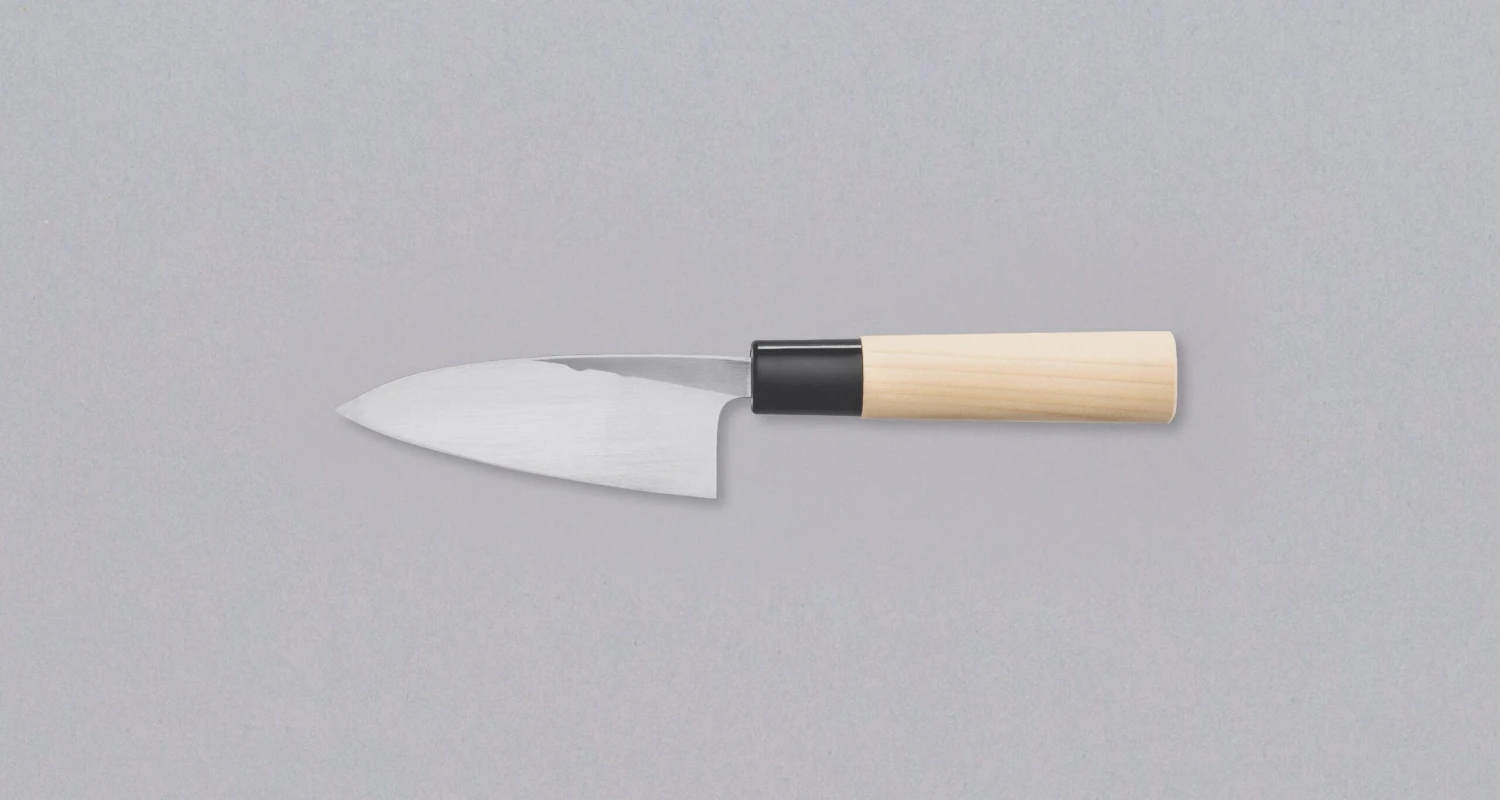 Ko-Deba Hammered Finish is a small, single bevel deba (right-handed users only!), primarily intended for filleting smaller fish, but it also performs well at smaller kitchen tasks, like mincing herbs or cleaning and preparing vegetables.