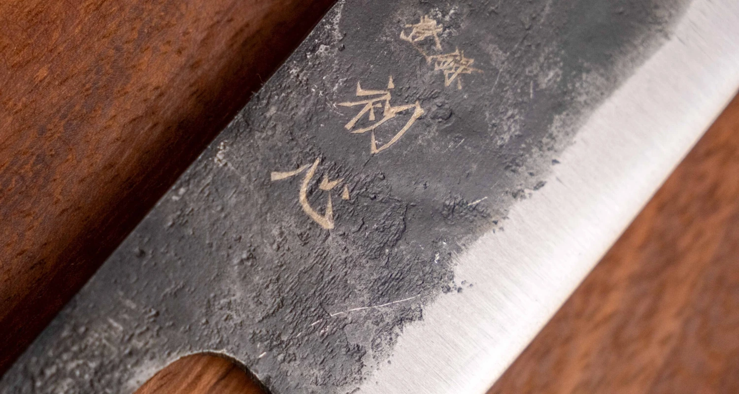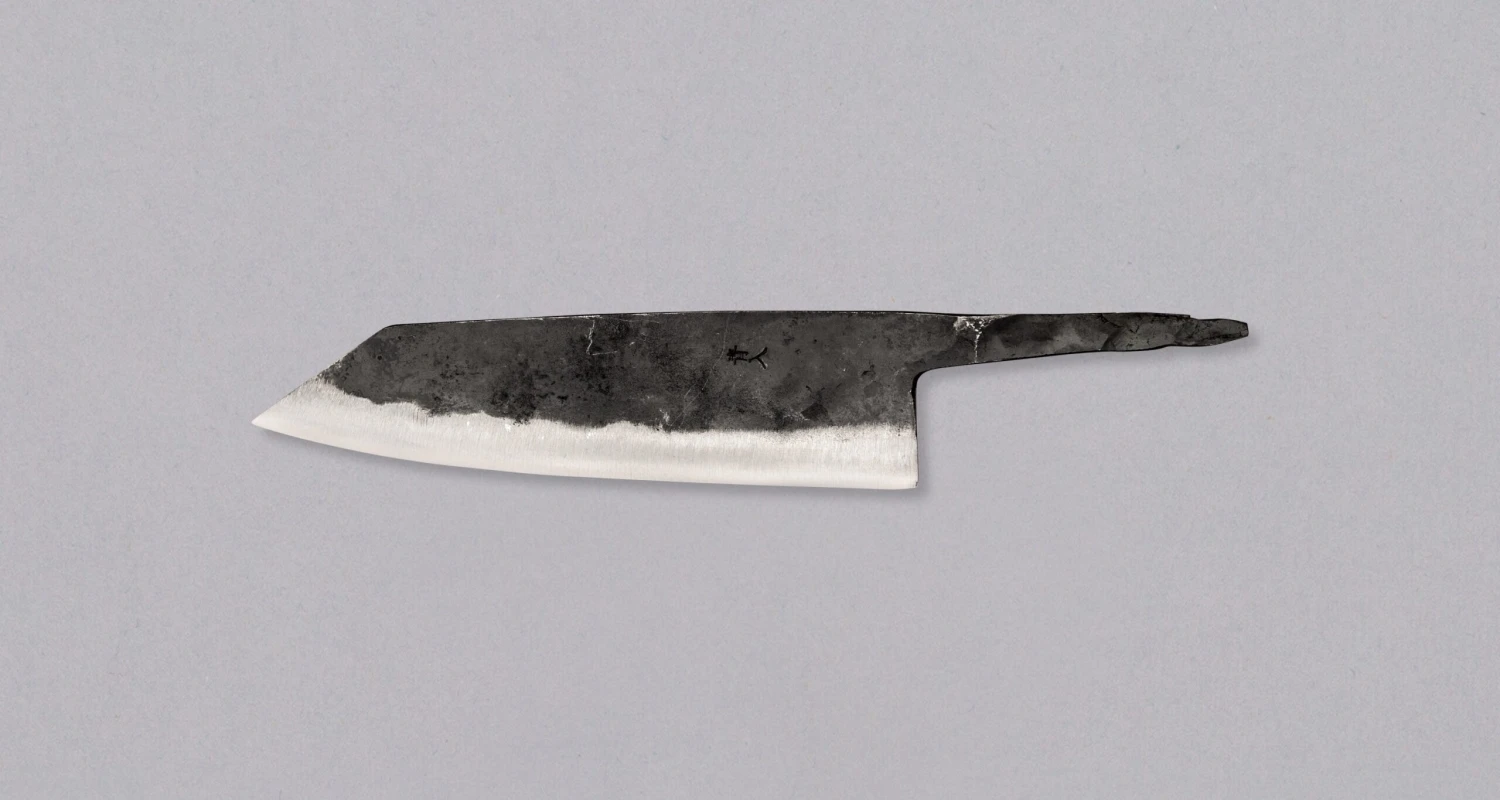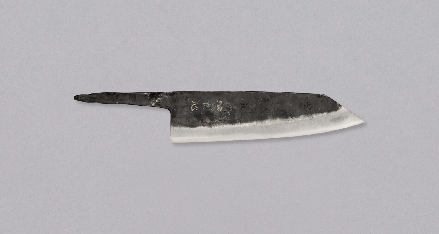 Please Note: The blade finish has a raw, unrefined texture, and since the knife is entirely handmade, small imperfections on the surface are to be expected. Both the core and outer layers are made of carbon steel, which is not corrosion-resistant—so the blade will develop a natural patina over time and may rust if left wet or exposed to acidic substances. This knife is best suited for users familiar with the care and maintenance required for Japanese knives.