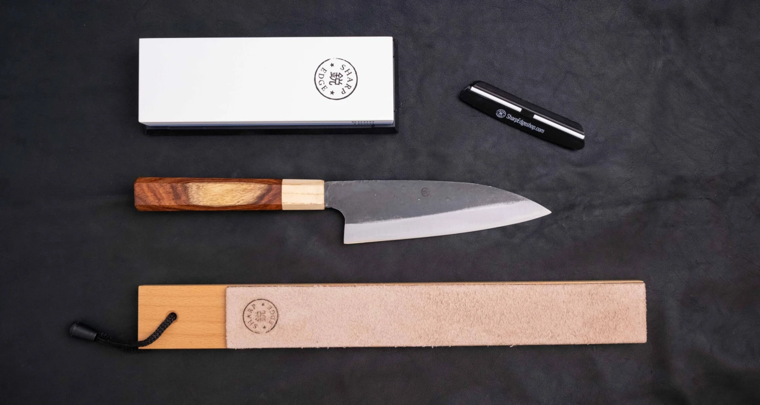 The set includes everything you need to keep all your knives, whether Japanese or not, in good shape on a budget.