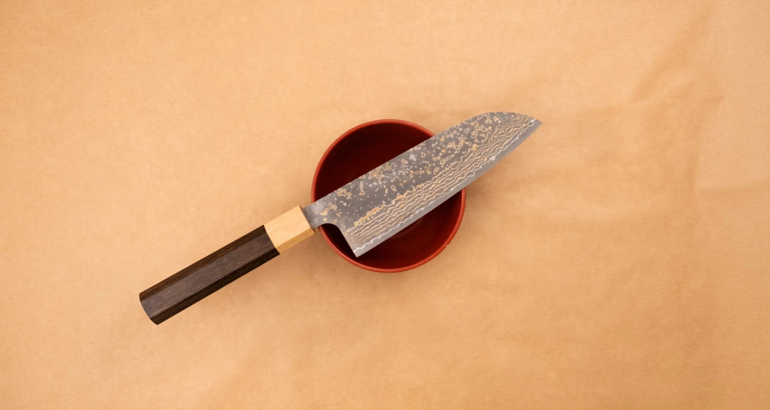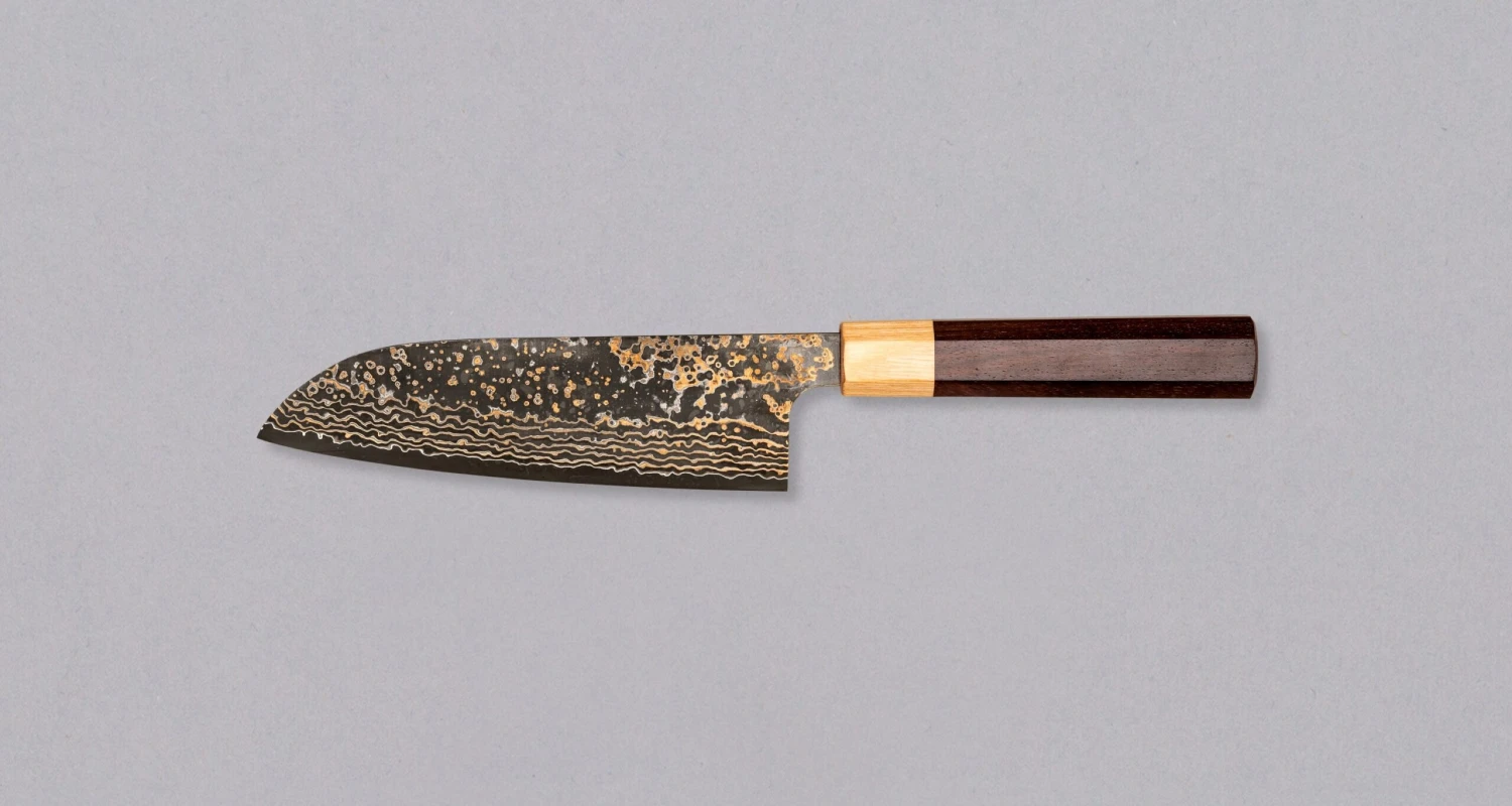 Saji Santoku VG-10 Gold RWO 165mm is a versatile Japanese kitchen knife suitable for preparing meat, fish and vegetables. However, it would be an injustice to call it just a kitchen knife, as it is a remarkable example of blacksmith’s craftsmanship – from its unique design to its veryย specific features.