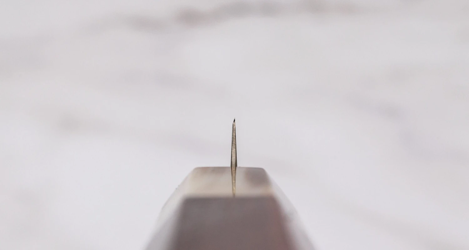 Only one layer of steel is used for the knife to be flexible. When deciding on the steels we wanted to make a knife from, we weigh the characteristics such as hardness, sharpness, ease of maintenance, graininess and ease of sharpening. The biggest challenge was to make the blade flexible enough while keeping the hardness at 62-63 HRC.