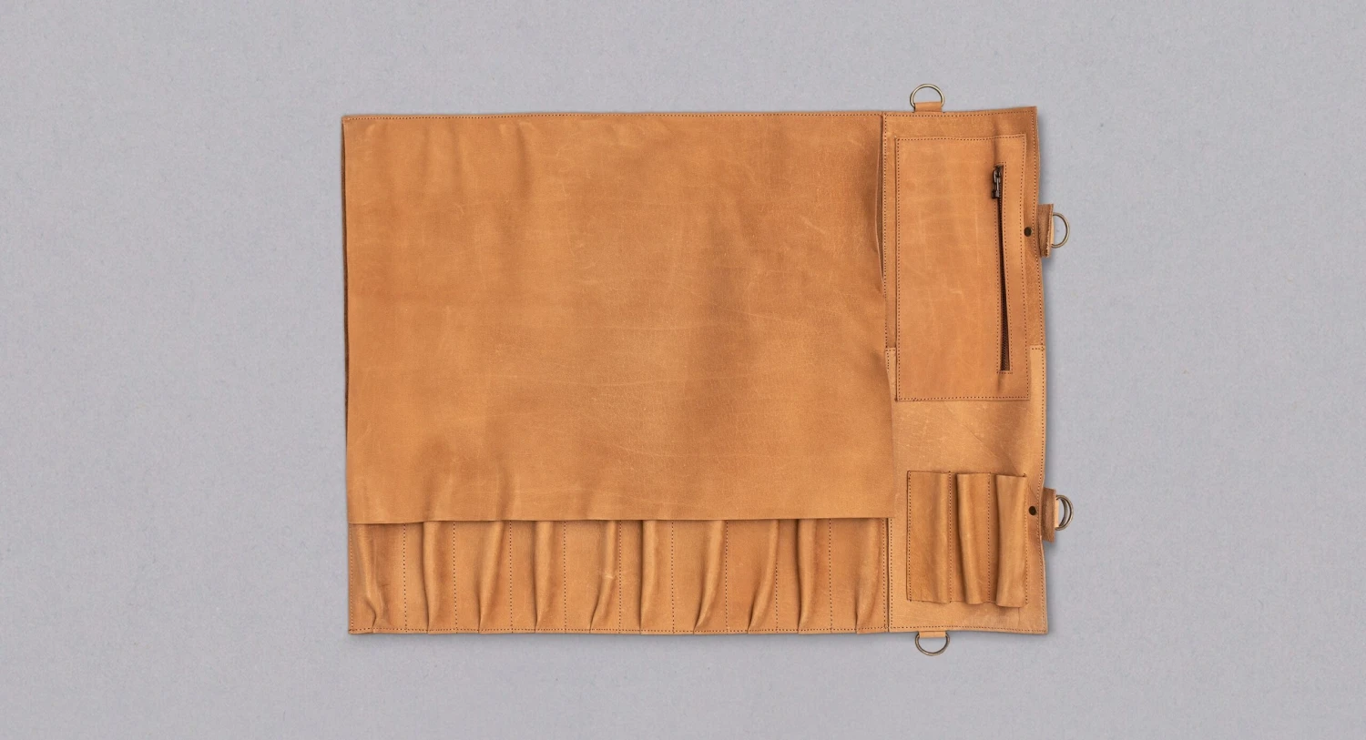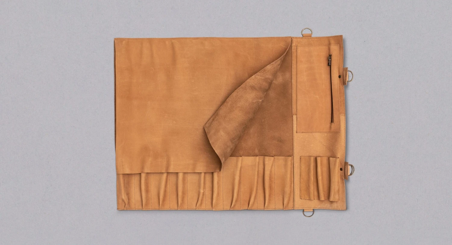 Our Chef’s Leather Knife Roll is a must-have for every professional chef or passionate home cook with a large arsenal of kitchen tools. An elegant and safe way to store and transport your knives and kitchen accessories wherever the job takes you.