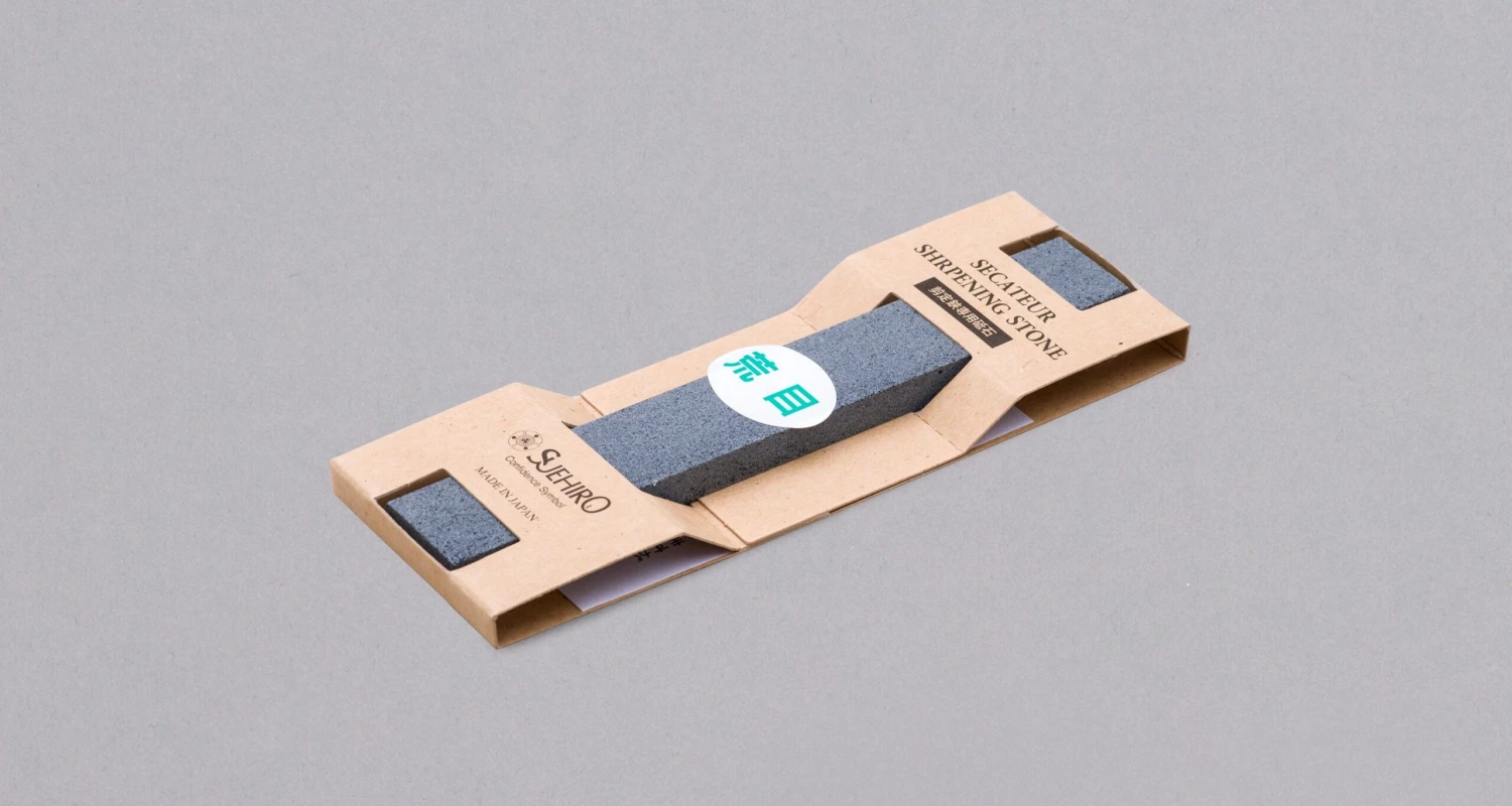 Smaller #100 grit whetstone. Designed primarily for sharpening garden tools, scissors, pocket knives and hunting knives, its convenient size and light weight also make it suitable for camping, picnics in nature and similar adventures.