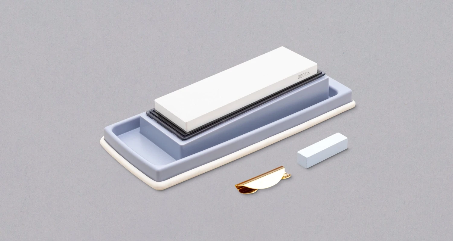 A special feature of this set is its stone base, which serves a dual purpose; it not only protects the stone but also serves as a stable sharpening stand. Equipped with a non-slip mat and a collection tray, this base ensures a clean and suitably dry work surface by efficiently collecting the excess water and paste produced during sharpening.