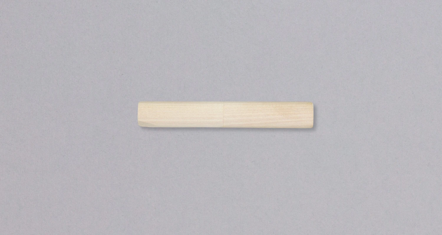 The single-bevel blade is hand-forged from Aogami steel (Blue steel 2), hardness 61-62 HRC. The core and outer layers of the knife have a lower percentage of chromium, which means that the blade will get some patina over time. The advantage of such a blade is that it has a very fine sharpness, which lasts a long time and is eventually very easy to touch up.