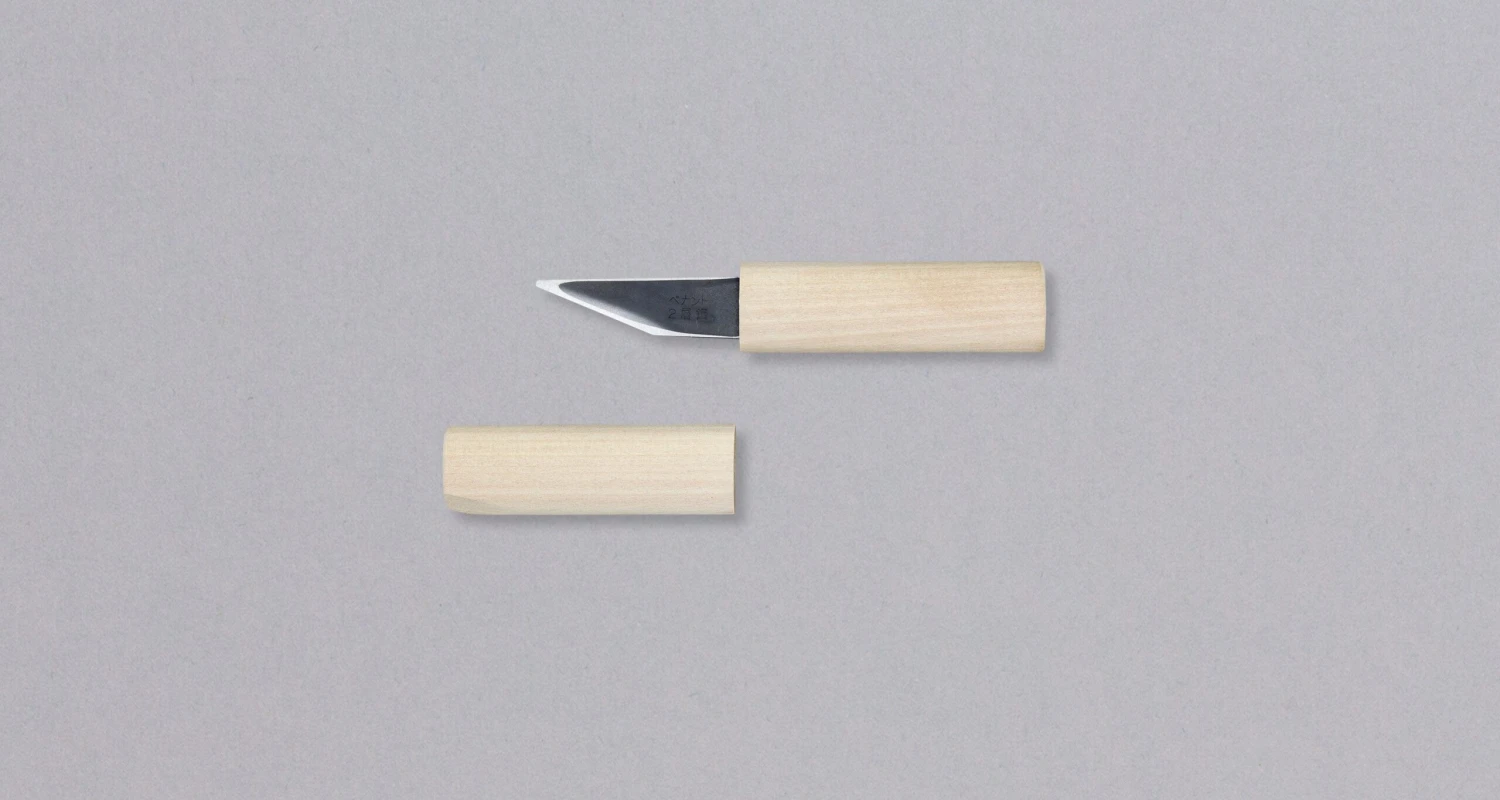 It translates directly to a “small cutout sword”. It is traditionally a craft knife with pure, minimalist design and a beautiful wooden handle that blends seamlessly into its twin, a protective sheath or saya. They are both made from the same block of wood.The single bevel blade is suitable only for right-handed users!