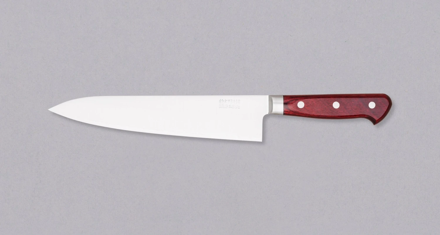 Takamura Gyuto Migaki SG2 210mm is a knife we recommend for professional chefs and all you talented home cooks, but above all is a great first knife for young chefs. Why? The blade is easy to maintain, offers long-lasting sharpness, and is practical and lightweight enough for long hours as a prep chef in a busy restaurant.