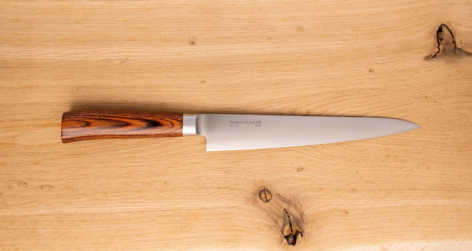 Tamahagane knives are made in the Tsubame-Sanjo region of Niigata prefecture in the North of Japan. The region is known for steel products that are made using traditional skills and knowledge blended with modern methods and technology. The smithy uses the name Tamahagane for this exceptional line of knives which boasts long-lasting sharpness and is an intricate blend of tradition, centuries worth of experience and the advancement of modern metallurgy.