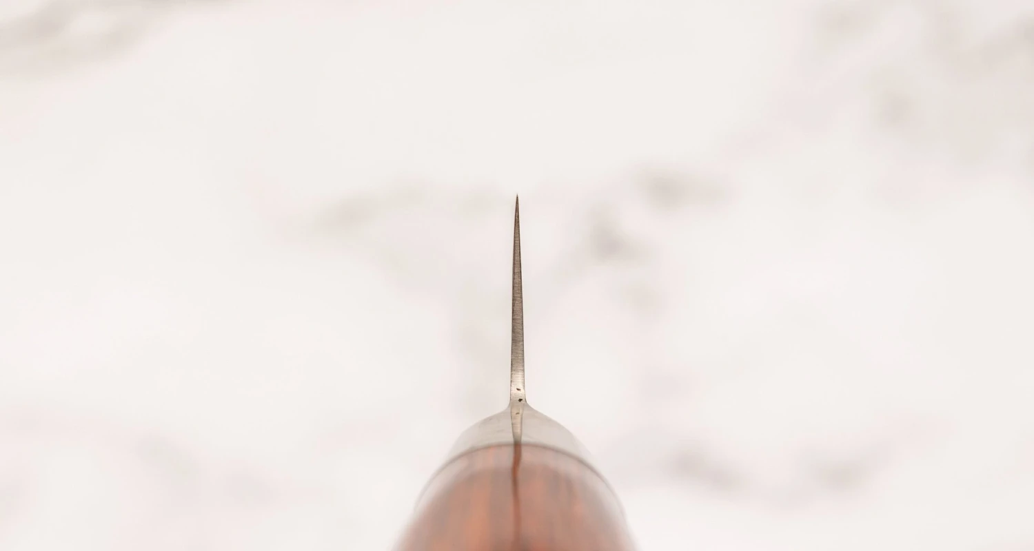 The handle is made out of pakka wood laminate in light brown color. It is quite large in comparison to handles on other Japanese knives and thus enables a firm grip. It is suitable for both right- and left-handed users. We especially recommend this type of handle to chefs with larger hands who usually struggle to find a suitable and comfortable Japanese knife.
