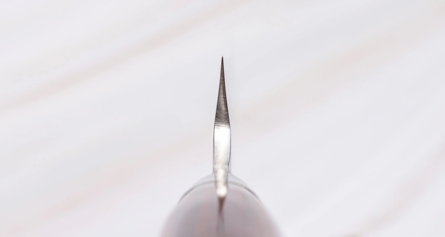 The handle is made out of pakka wood laminate in light brown color. It is quite large in comparison to handles on other Japanese knives and thus enables a firm grip. It is suitable for both right- and left-handed users. We especially recommend this type of handle to chefs with larger hands who usually struggle to find a suitable and comfortable Japanese knife.