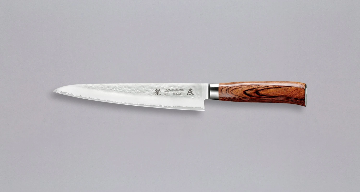 Tamahagane knives are made in the Tsubame-Sanjo region of Niigata prefecture in the North of Japan. The region is known for steel products that are made using traditional skills and knowledge blended with modern methods and technology. The smithy uses the name Tamahagane for this exceptional line of knives which boasts long-lasting sharpness and is an intricate blend of tradition, centuries worth of experience and the advancement of modern metallurgy.
