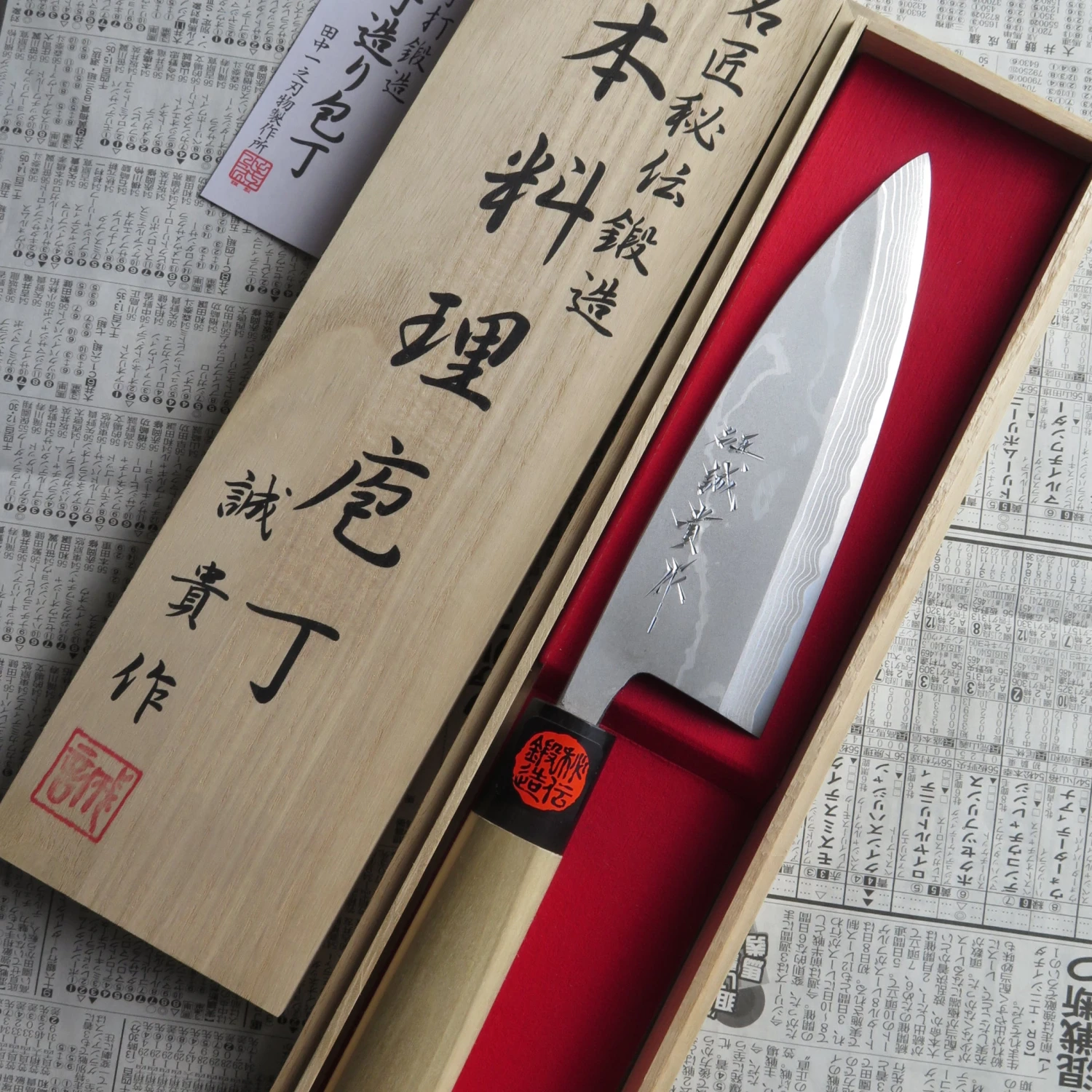 The remarkable performance of kitchen knives may well be a synonym for Shigeki Tanaka. This young skilled craftsman that can boast with his radical design and mastery makes knives that are beloved by people all over the world. Shigeki Tanaka is the fourth generation blacksmith. Due to his excellent knife-making skills, Shigeki Tanaka is one of the most recognizable blacksmiths in the city of Miki.