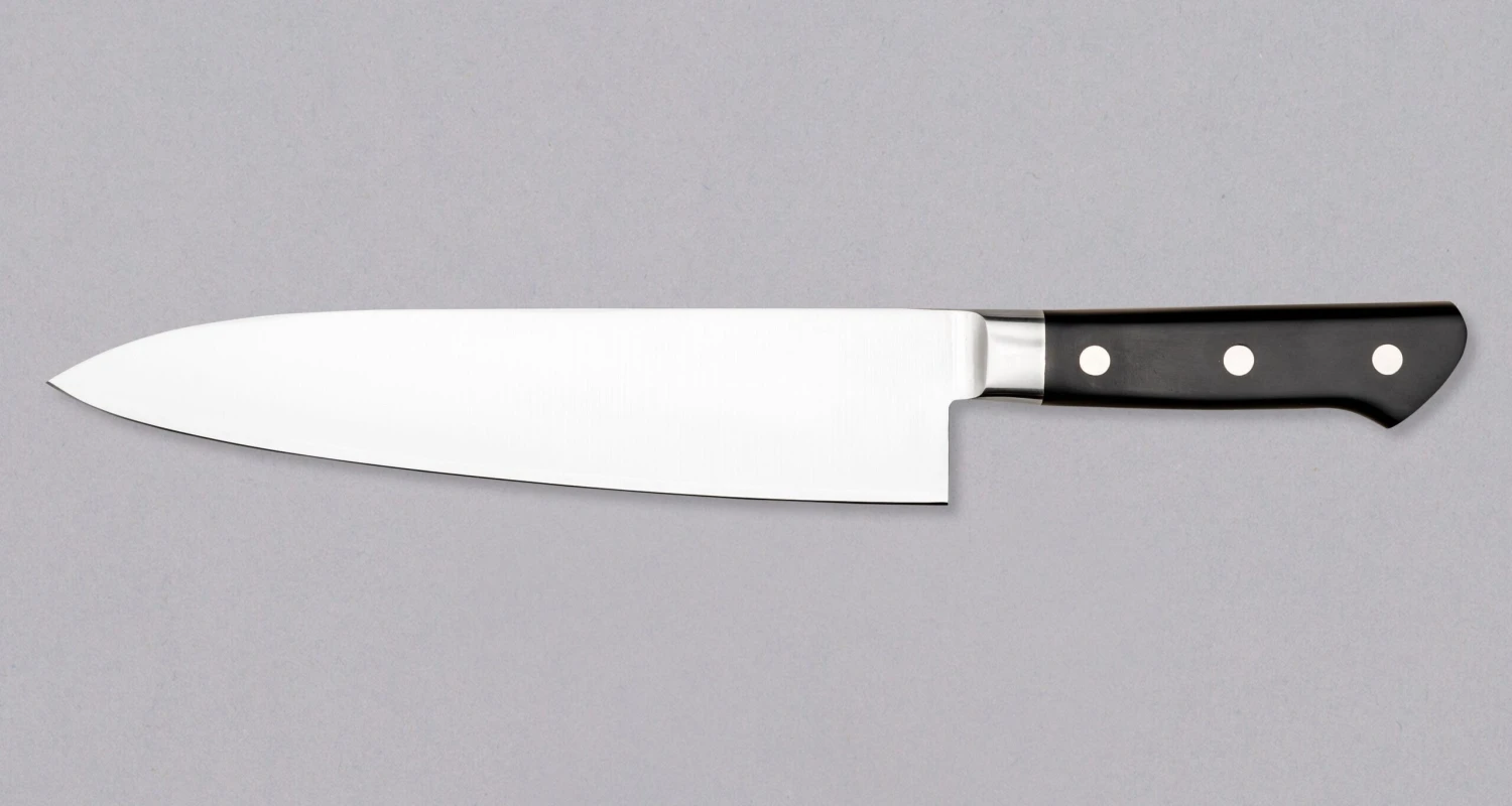 Westernized version of the deba, fitted with a Yo (‘Western’) style handle. The blade normally features a double-bevel cutting edge, and its shape resembles a gyuto, though it is much more robust and significantly thicker.