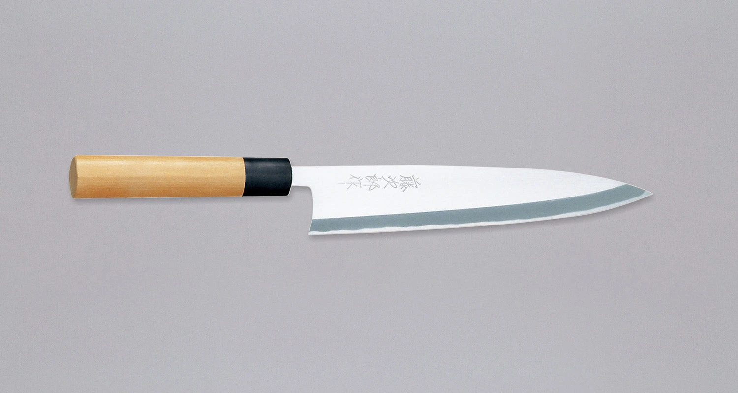 Mioroshi deba from Japanese knife giant TOJIRO is a true working horse. With its thick spine and the steel that is easily sharpened (Shirogami #2 steel), it features a traditional Japanese magnolia D-shaped handle (with a black plastic ferrule) for a firm and comfortable grip.Β The blade shape itself – Mioroshi deba – is designed to fillet larger fish (3kg and up).