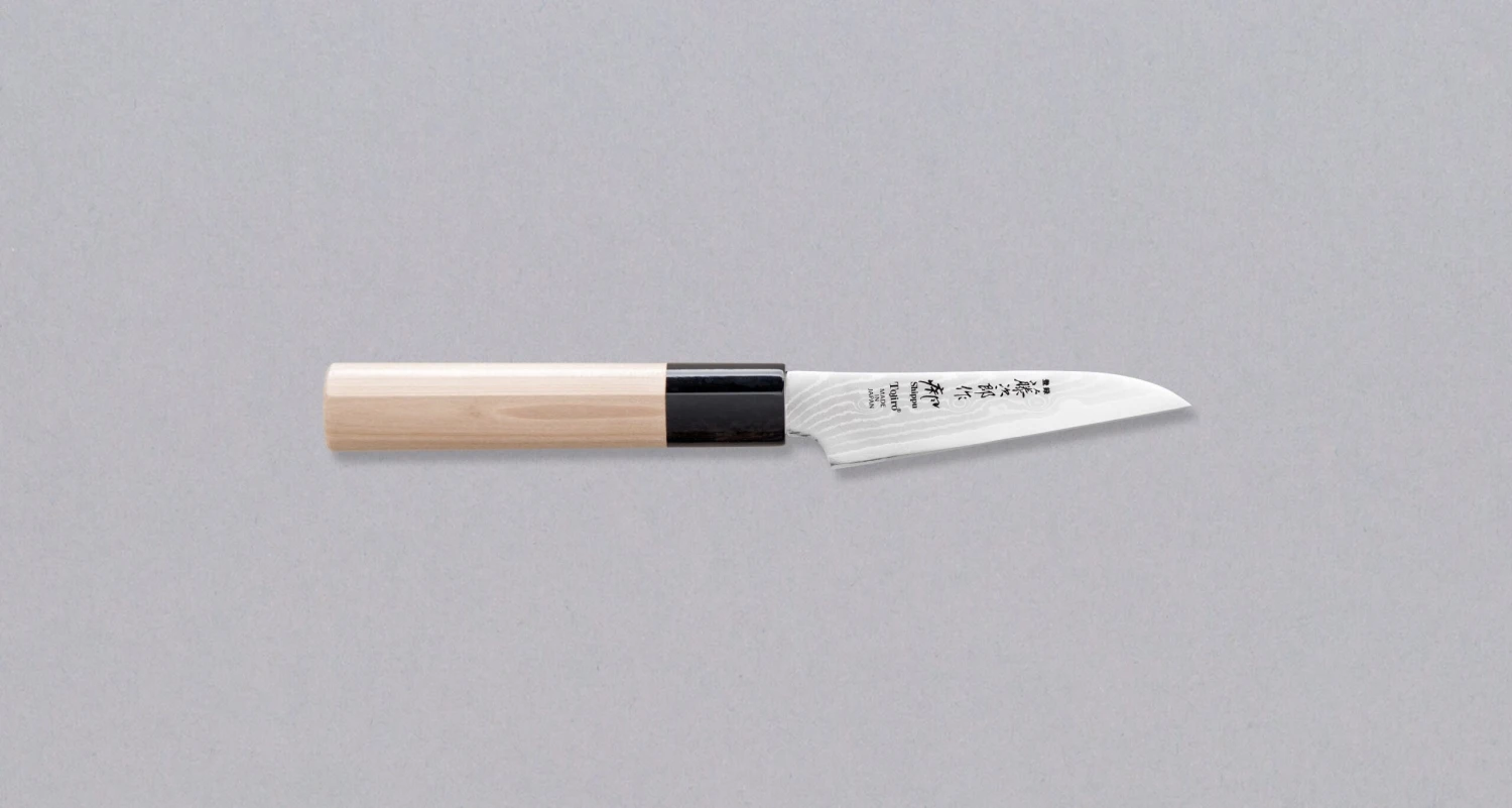 TOJIRO Petty Damascus 90mm, sometimes also called a paring knife, is a small and highly versatile kitchen knife. Paring knives offer more dexterity, precision, and maneuverability than the larger, multi-purpose knives, therefore its main tasks are peeling, slicing, and trimming.
