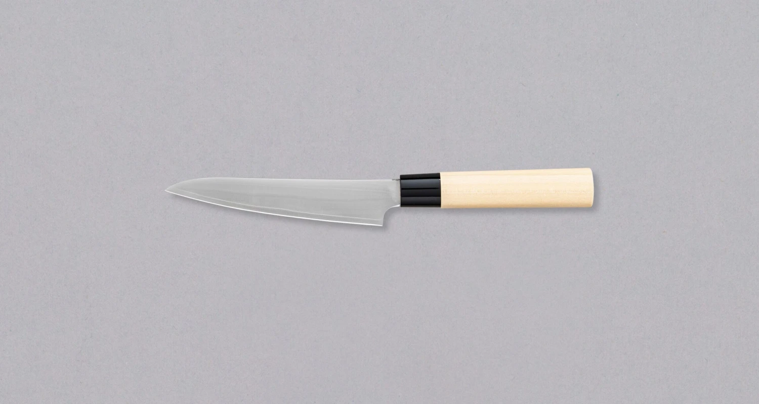 TOJIRO Petty Zen 130mm is a knife from the renowned manufacturer TOJIRO, featuring a Japanese magnolia handle, a minimalist blade design and a hard stainless steel. The result is a lightweight, sharp, versatile kitchen knife for home and professional cooks with a blade that is highly rust-resistant and easily resharpened.