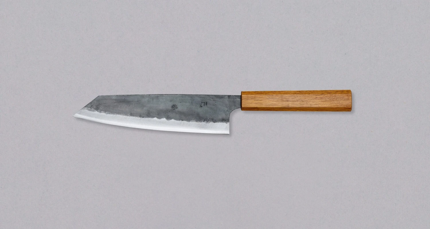 Tsukasa Bunka Shirogami #2 Oak 180mm is a compact and versatile kitchen knife crafted by the highly skilled blacksmith Tsukasa Tokaji at the renowned Tokaji forge in Kลchi, Japan. This knife showcases the exceptional handmade quality and features a blade made from Shirogami #2 steel, well-known for its high carbon content and outstanding edge retention. Chefs and culinary enthusiasts praise Shirogami for its beauty, precision, and finesse in slicing and dicing!