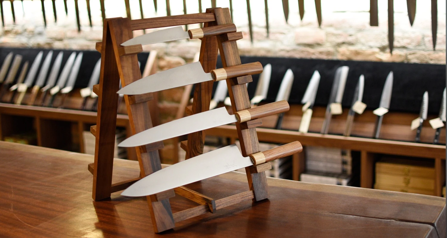 Where the blade meets the handle, you may notice a special feature called Machi spacing. This is a small gap between the lower part of the blade and the handle, which can be seen mostly in Yanagiba knives. It is a feature that pays tribute to Japanese swords and is typical mostly in the work of blacksmiths located in and around the Tokyo area. So don’t worry, it is not a flaw in assembly of the blade and the handle, but rather a homage to Japanese forging tradition that could be displayed on a magnet right there on your kitchen wall. 🙂