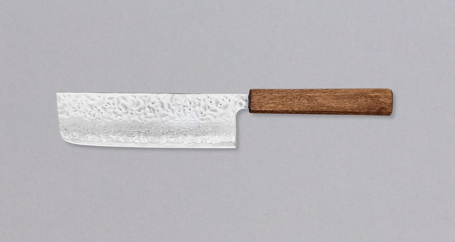 Nakiri blade shape is a traditional Japanese knife shape, designed for the task of cutting vegetables. A knife that will be appreciated in the hands of a prep cook with mountains of veggies to prepare every day. Recently, many nakiris find their way into home kitchens – it’s a perfect knife for vegetarians and veggie lovers. Chop away!