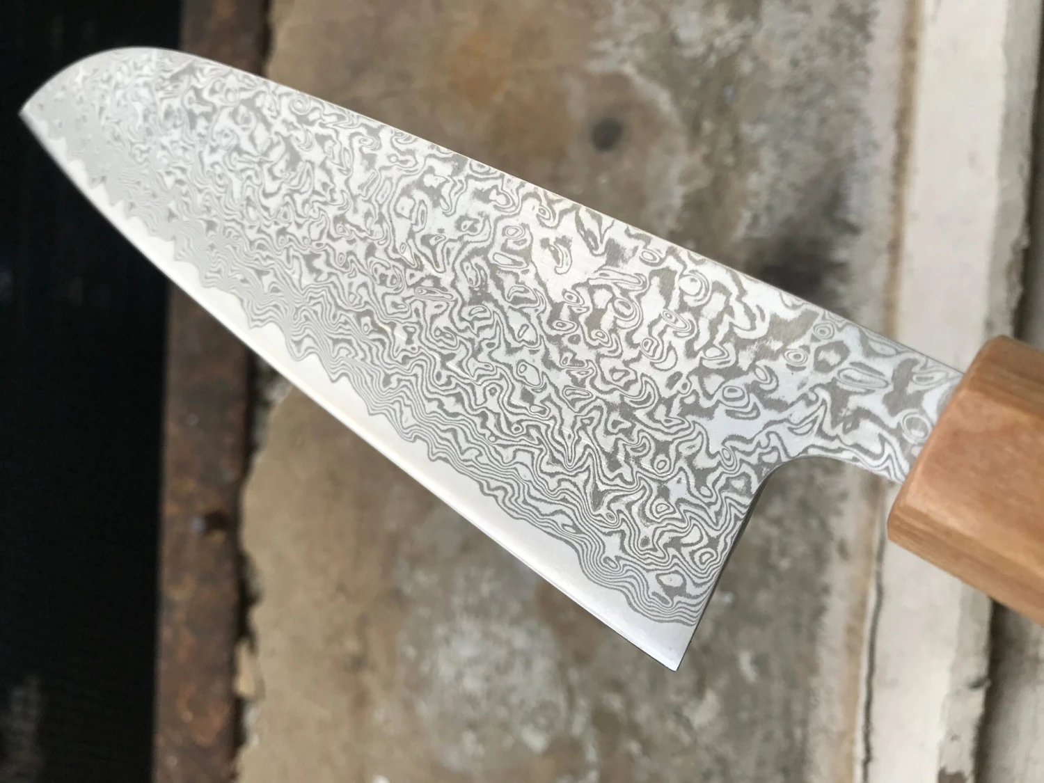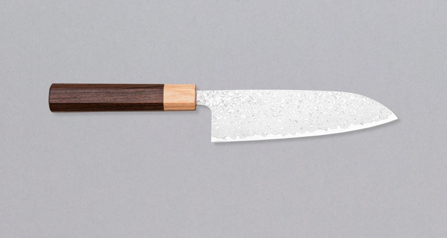 This santoku is manufactured at the smithy of Tsunehisa in Tosa, Japan.