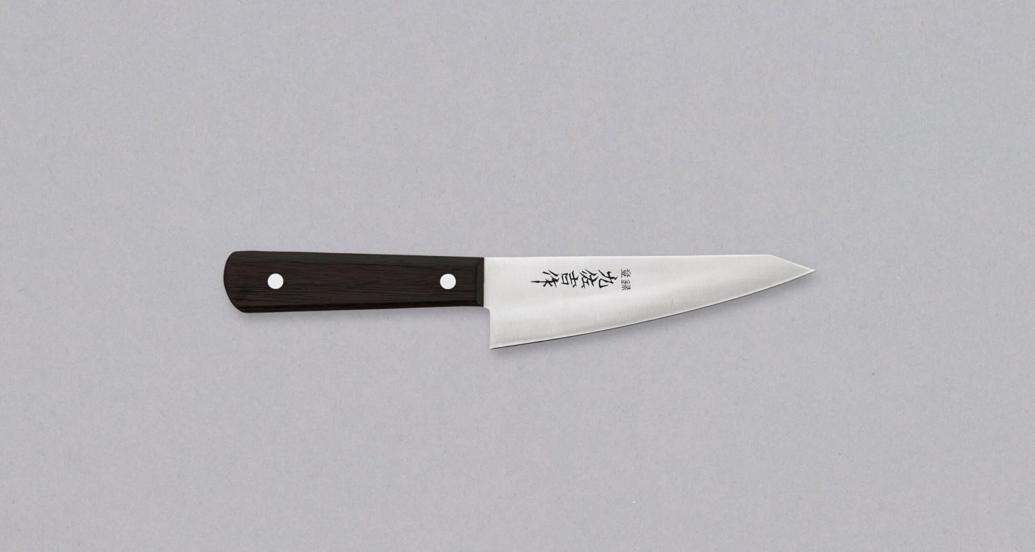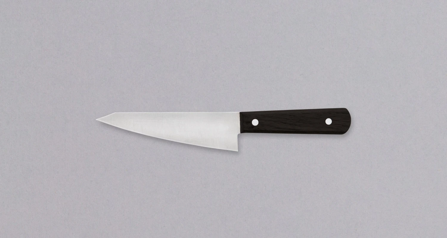Yoshida Hamono’s Garasuki is a Japanese boning knife, and this one is considered lightweight for its category, so it can also be used as a smaller all-rounder, petty knife. However, the main purpose of Garasuki knives, with their special, triangular shaped stiff blade, is deboning poultry and cutting through soft joints. In restaurants, it is mostly used to break down whole chickens, while at home it can also serve as a petty knife, due to the similar shape and length.