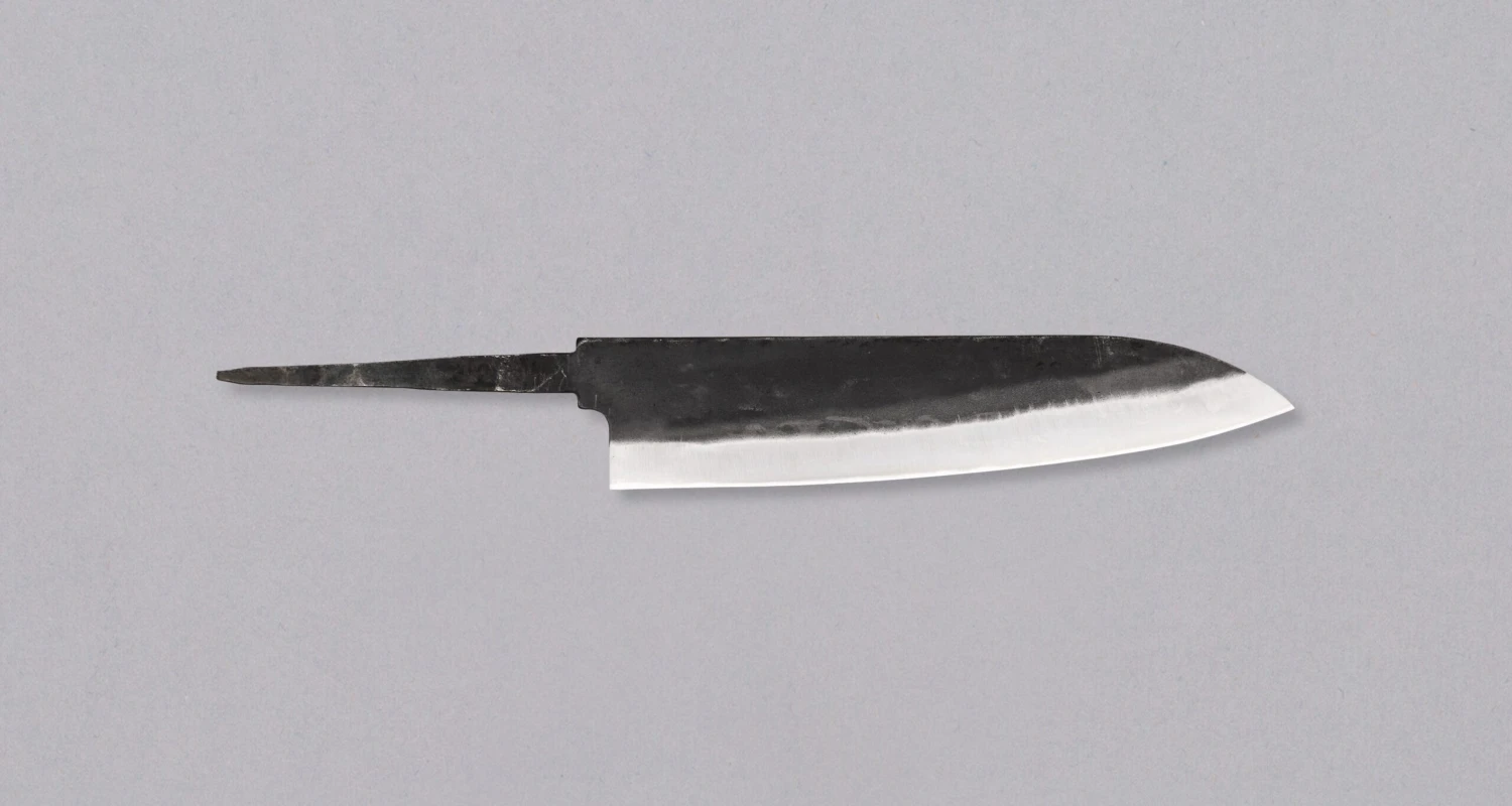 The blade has a dark finish which is the reason this look is also called kuro-uchi – the word “kuro” means black. This look is traditional and robust, with an unprocessed top part of the blade that has already developed a dark protective patina.