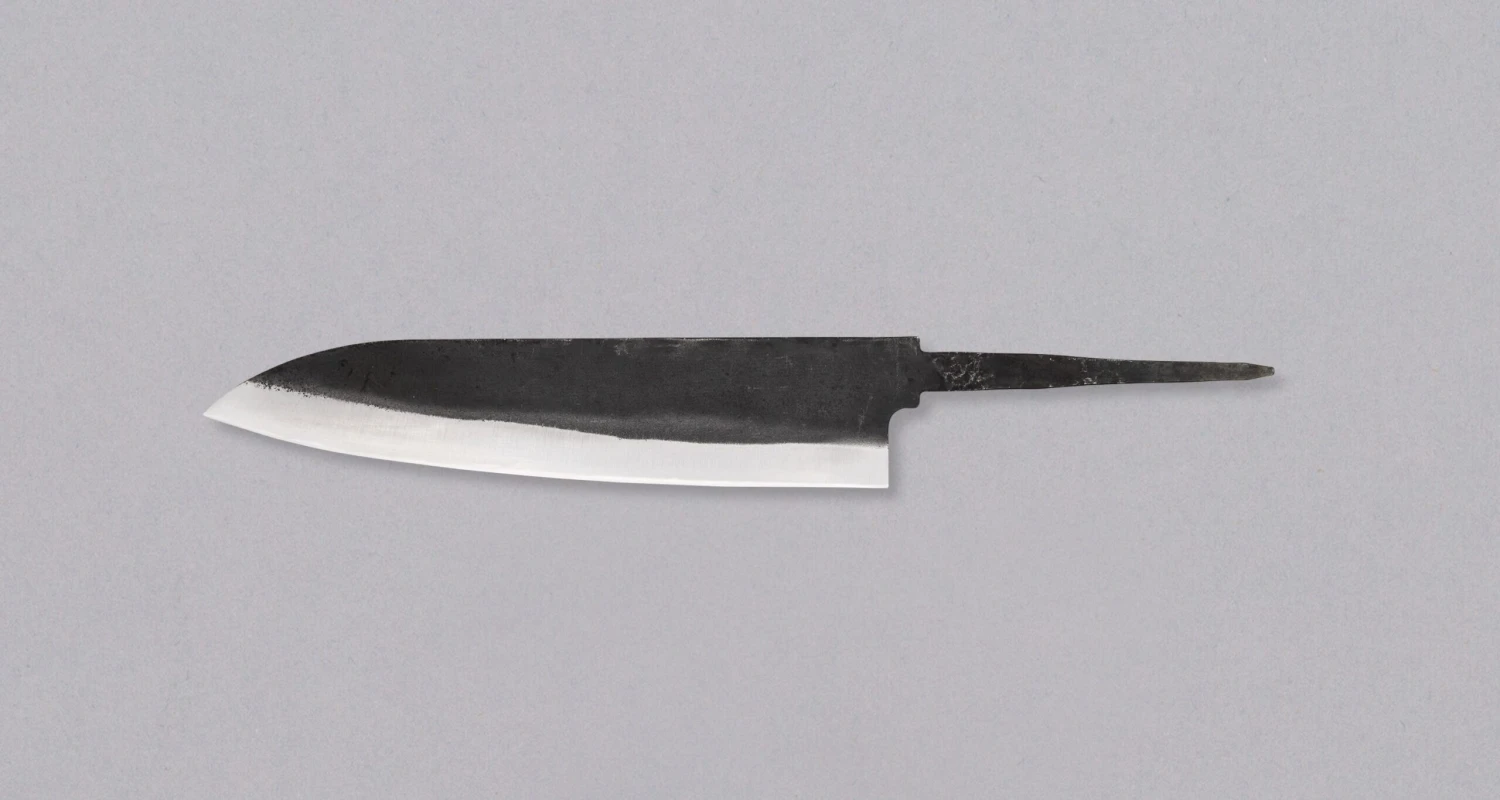 Yoshida Gyuto SUJ-2 Kuro-uchi 210mm (8.3″) is a multi-purpose blade made in the Japanese smithy Yoshida Hamono. It’s made from high-carbon SUJ-2 steel, so it is easy to sharpen and stays sharp for a long time. The blade has a minimalist, black kuro-uchi look with no kanji imprints, so it will suit both classic and more extravagant handles wonderfully.