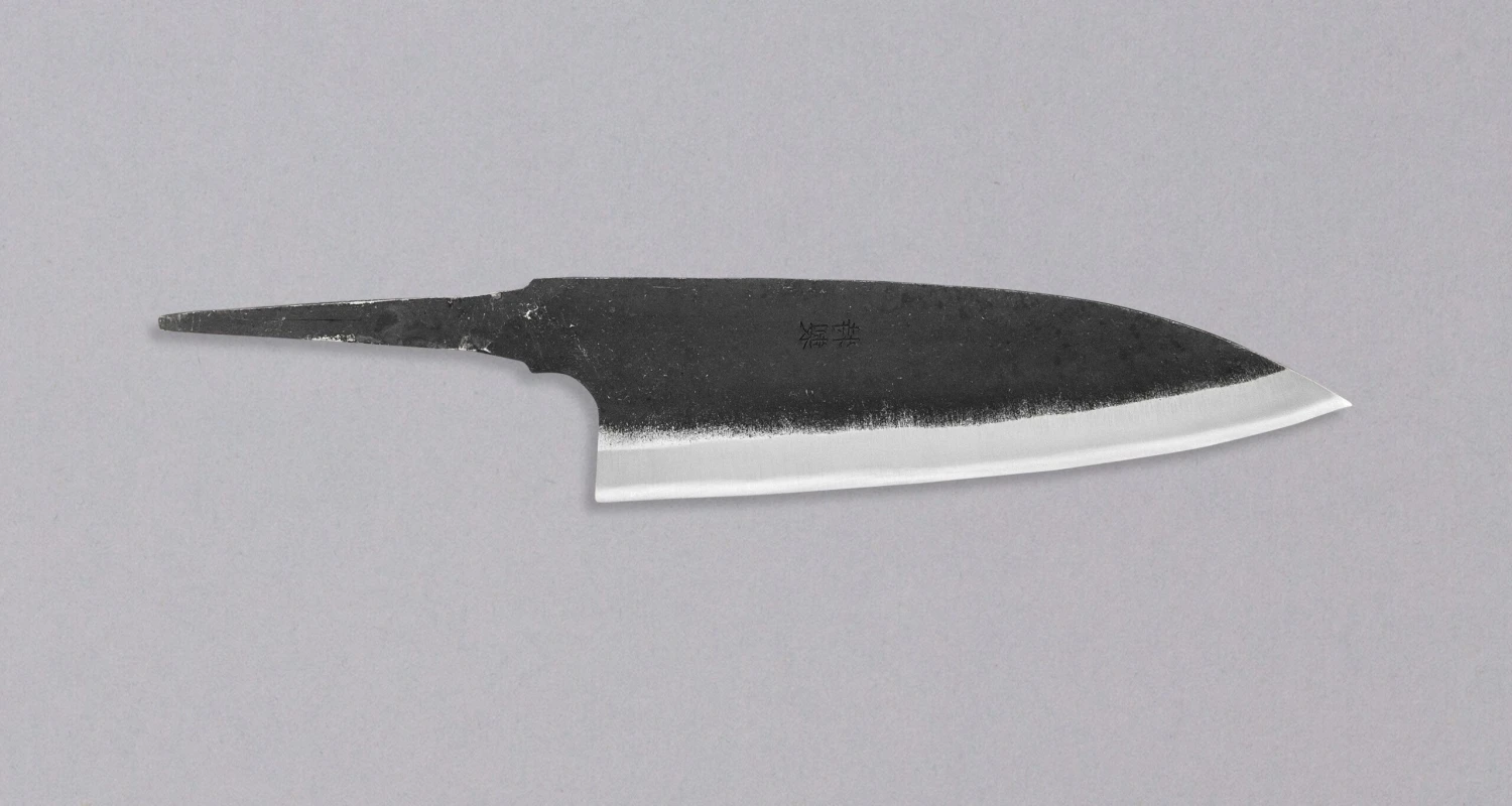 The Yoshida Santoku Funayuki Kuro-uchi 155mm (6.1″) blade is available without a handle. This is your chance to make your own handle or order it separately so you can put together a one-of-a-kind knife that is perfectly suited to your taste and needs. The knife is also available with an oval handle in magnolia wood.
