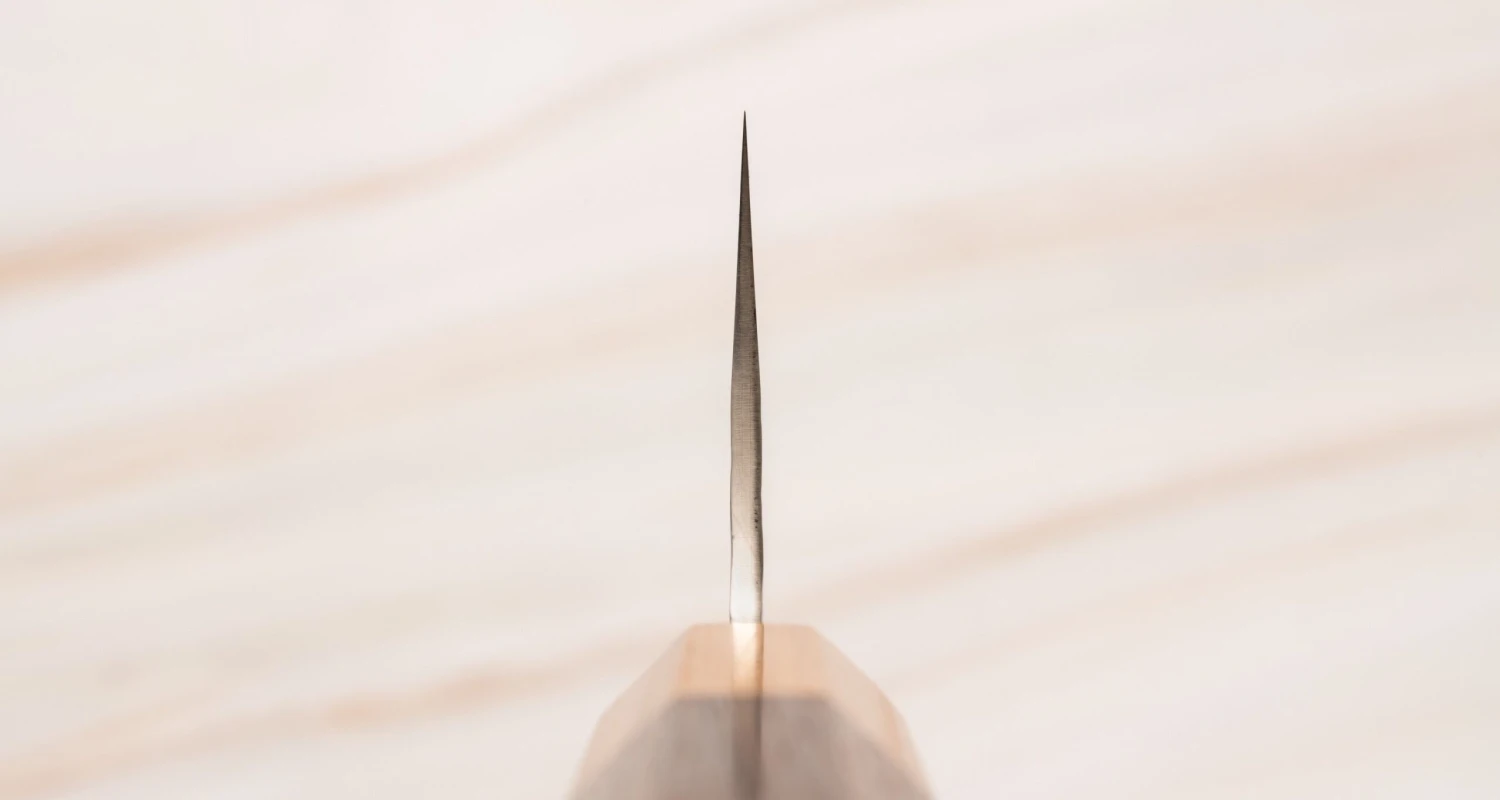 → A slight curve between the tip and the midsection makes the belly great for rocking the blade back and forth when cutting.
